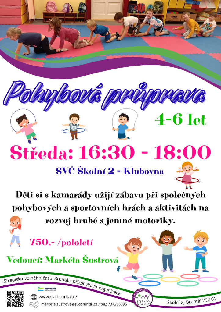 Kroužek je určen pro dětí z MŠ a děti z přípravných tříd. Je vedený hravou formou. Užijeme si zábavu při společných pohybových a sportovních hrách a jiných aktivitách pro rozvoj hrubé i jemné motoriky. Také si procvičíme barvičky a základy počítání.