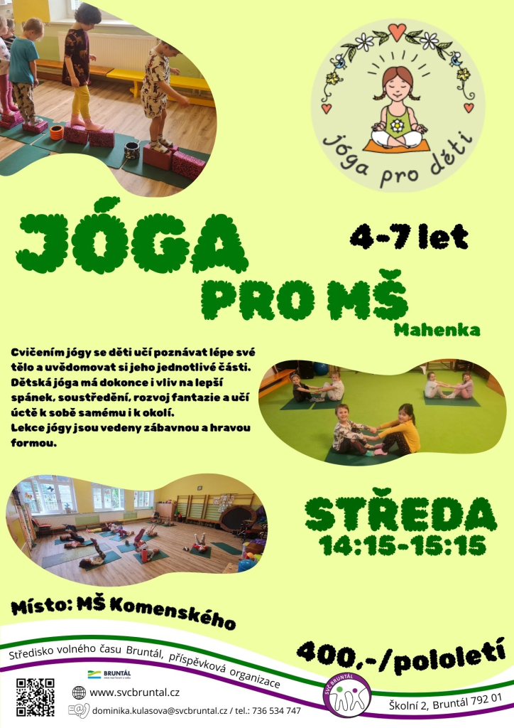 Kroužek dětské jogy určen pro děti přímo v MŠ Komenského Bruntál.