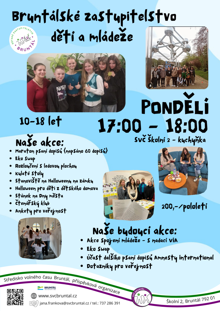 Zastupitelstvo je místem, kde děti mluví za děti – jejich hlas ovlivňuje, co se v Bruntále bude dít. Členové připravují akce pro spolužáky, podílejí se na projektech města a setkávají se s vedením radnice.
