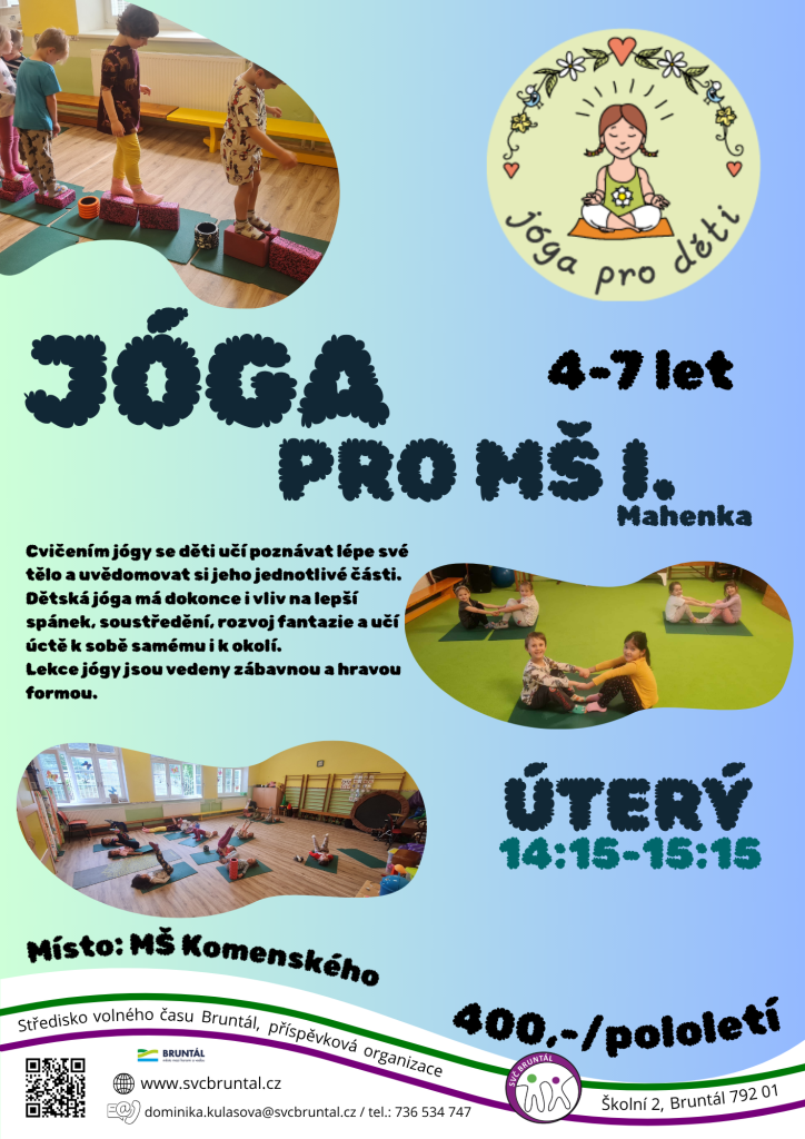 Kroužek dětské jógy určen pro děti přímo v MŠ Komenského Bruntál.
