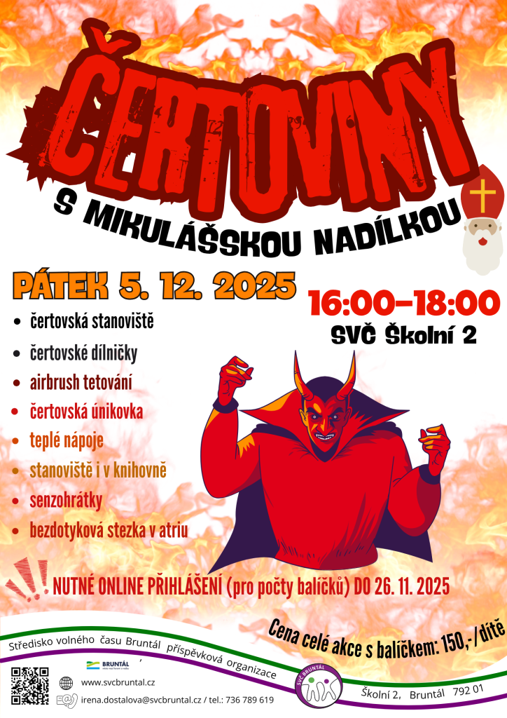 Nemáte ještě plán na Mikuláše? Přijďte v pátek 5. prosince od 16:00 do 18:00 na SVČ (Školní 2) a užijte si odpoledne plné pekelné zábavy.