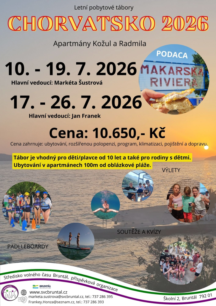 V ceně je ubytování, doprava, rozšířená polopenze, program. Vhodné pro děti/plavce od 10 let, rodiny s dětmi.